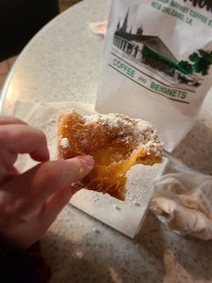 I think my favorite part were our early morning walks. In a town that doesn't go to bed until the wee hours, the early morning hours are still and beautiful. We were amazed to see the street cleaners, more like a giant pressure washer, coming through each morning to remove the evidence of the night before. In the wee hours the air was clean, the smells of the city were normal and expected. Hints of coffee and breakfast foods drifted from the cafe's. We walked the almost silent streets, gazing in shop windows, sipping hot chicory lattes. We were blessed to watch the sunrise on the same mighty river that flows so close to our homes. The ships were huge as they made their lumbering way out to sea. The waterfront a place to enjoy.