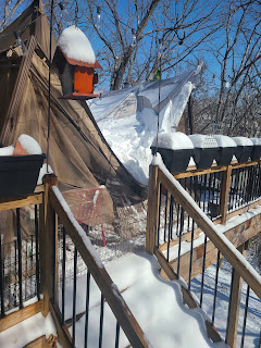 The weight of the snow took out my gazebo on Friday. Hubs and I did not enjoy cleaning that mess up, but the pups are in heaven. Their own private snow mountains. Not so sure I will replace the gazebo, I loved the shade, but the deck sure feels bigger now that there is nothing blocking the view. We'll see. I definitely have time to think about it and can always put an umbrella up again if I want shade.